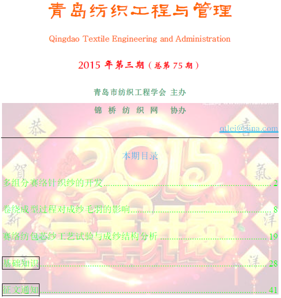 For details, please click to download: “Qingdao Textile Engineering and Management” Issue 3, 2015 (electronic version).pdf
